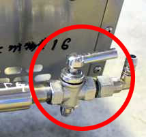②プロパンガスボンベのガスコックを一度閉じる。