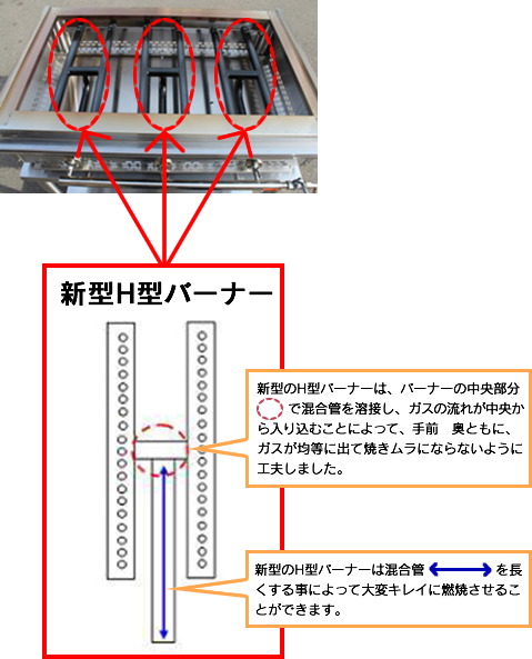 動画をご覧頂くと新型H型バーナーが従来のバーナーに比べていかに使いやすいかが分かります!!