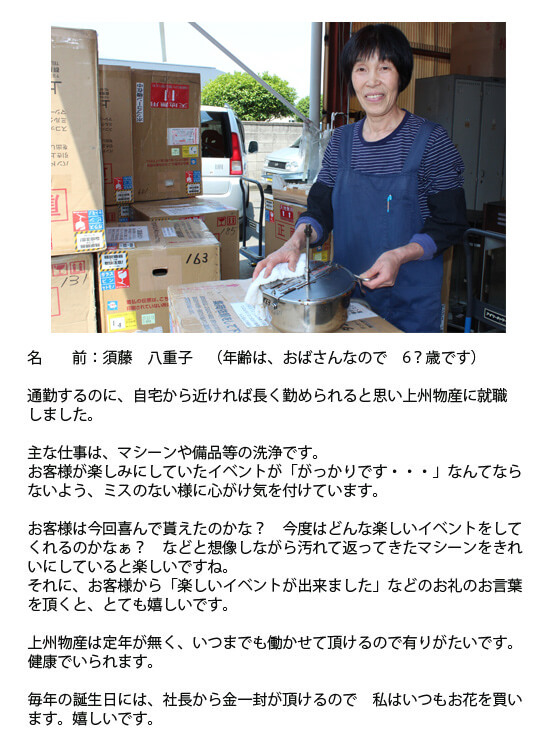 笑顔をつなぐレンタル 上州物産スタッフ一同