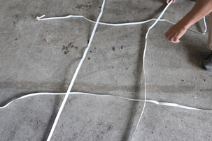 PPバンドを2本、左の写真のように置いてください。