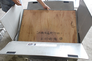 これは、添え木を置き、鉄板の上下に空間を作る事で運送中の衝撃を和らげる為です。