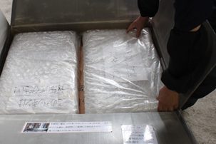 ②最初に鉄板が入っている箱をPPバンドの上に置いてください。